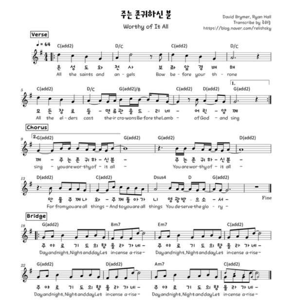 콘티설명 : 하늘보좌에 계신 주님께 찬송과 존귀와 영광을 드립니다. 평생을 주님을 높이며 영광을 돌릴때