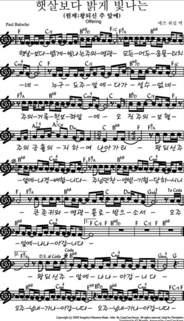 햇살보다밝게 빛나는(왕되신 주 앞에)F